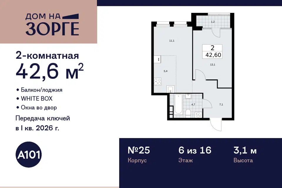 2-комн. кв., от 41.8 м², 13/28 этаж