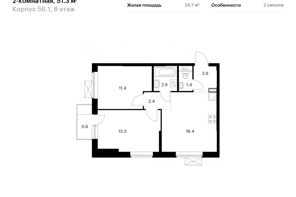 2-комн. кв., от 60.9 м², 1-13 этажи