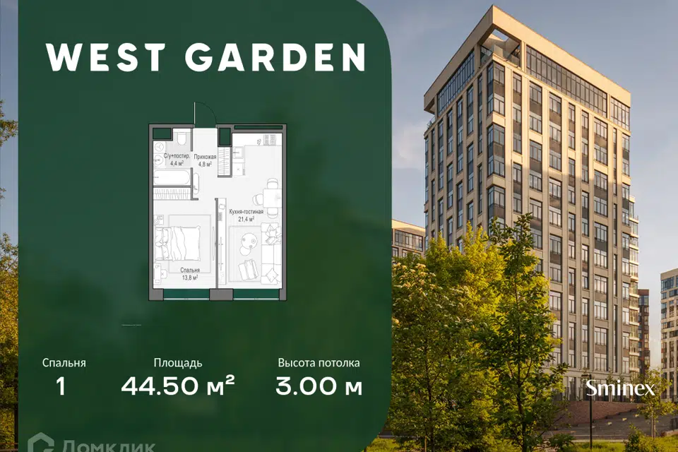 1-комн. кв., от 44.5 м², 10-12 этажи