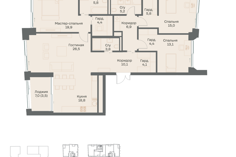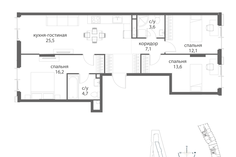 3-комн. кв., от 91.5 м², 25-29 этажи