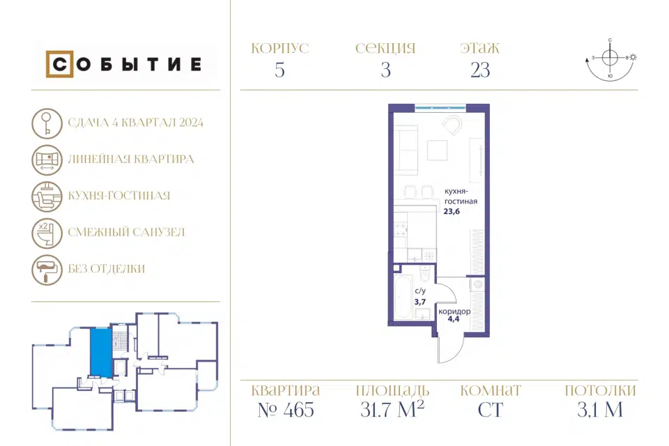 Студия, от 31.5 м², 2-18 этажи