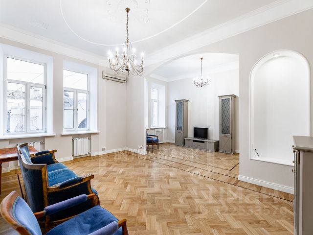 ID 33269. Современная 4-х комнатная квартира в доме 2004 года с подземной парковкой на Патриарших Прудах. В квартире современный ремонт с использованием только качественных материалов. Полная комплектация бытовой техникой и сантехникой престижных марок. Предлагается без мебели. Установлен бойлер, кондиционер, стиральная машина, проведен интернет и охранная сигнализация, много мест для хранения вещей. Виды на 3 стороны, три больших балкона. Функциональная планировка: общая площадь 180 кв.м., гостиная, полностью оборудованная кухня-столовая, 3 спальни, 3 гардеробные комнаты, 2 ванные комнаты и гостевой туалет. Подземная парковка включена в стоимость. В наличии гостевая наземная парковка в огороженном дворе дома. В ближайшем доступе множество кафе, ресторанов, музеев и различных памятников архитектуры. Можно с детьми. Можно с животными.