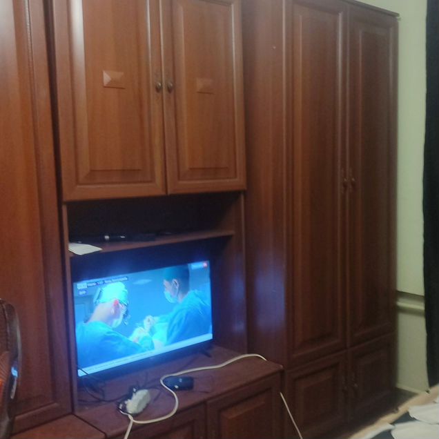 Комната изолирована, все необходимое для проживания: шкаф, тумбы, кровать, телевизор.