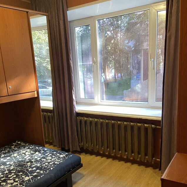 Сдается уютная комната площадью 11 м. Кв. В пятикомнатной квартире с косметическим ремонтом, общей площадью 100 кв. М. На 5 этаже 5 этажного кирпичного дома.
