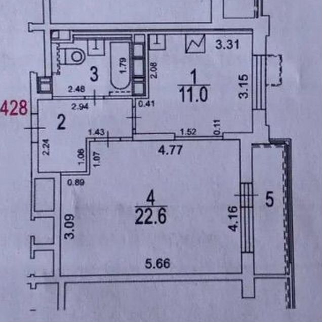 2-комн. кв., 43 м², 4/5 этаж