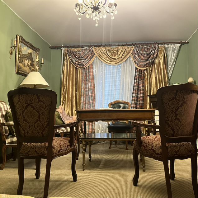 Квартира в самом центре Патриарших пудов . редкий дом , который находится во дворе , что делает квартиру очень тихой . Ни одно из окон не выходит ни на оживлению улицу , ни на дорогу . 3 изолированные комнаты , 2 из которых спальни . одна комната абсолютно пустая , может быть дополнительной спальней или кабинетом , плюс гостиная и кухня .