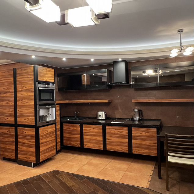 Сделан качественный ремонт, квартира укомплектована новой мебелью и современной техникой (холодильник, встроенные посудомоечная машина, варочная панель и духовой шкаф, микроволновая печь, стиральная машина), установлен кондиционер. Никогда не сдавалась.
