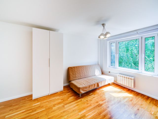 - Просторная комната с большим окном, обеспечивающим отличное естественное освещение.