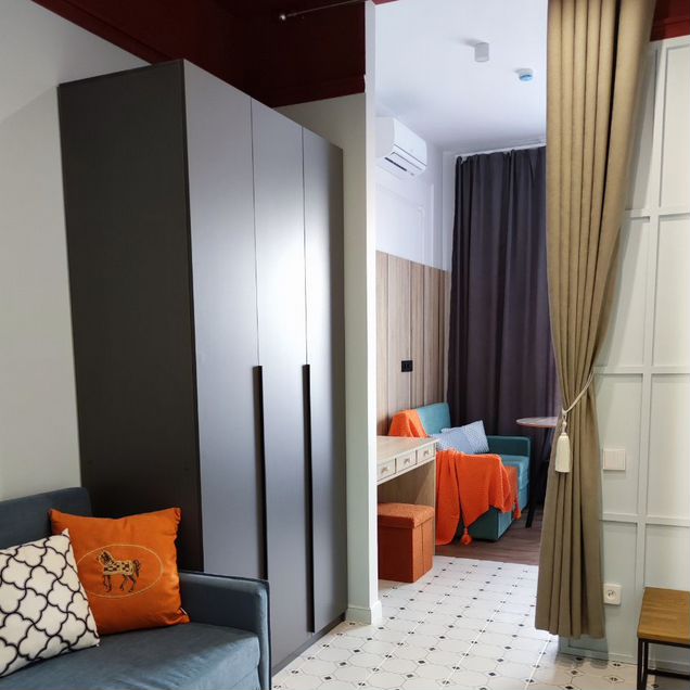 Комфортная двуспальная кровать с ортопедическим матрасом и белоснежным постельным бельем, где вы сможете полноценно отдыхать, диваны, системы хранения, рабочее место, современная, качественная, полностью оборудованная кухня.
