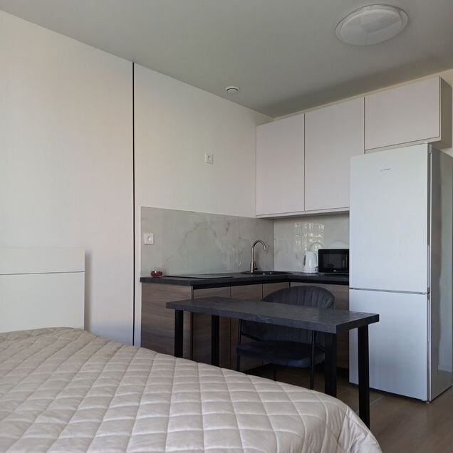 Заезд возможен с 03.11.2025. О КВАРТИРЕ Квартира с кухней-гостиной и евроремонтом. Окна выходят во двор. Из техники есть: Холодильник Духовой шкаф с функцией микроволновой печи Стиральная машина Посудомоечная машина Телевизор Пылесос