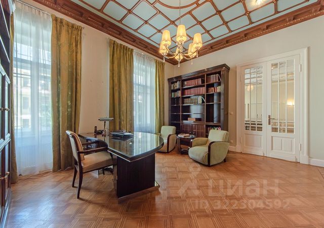 Шикарная представительская квартира, выдержанная в спокойном классическом стиле. Дореволюционный дом 1914 года, здание частично реконструировано с сохранением исторического фасада. Функционально квартира поделена на 2 части. Основная часть: гостиная-кабинет-столовая-комната отдыха (анфилада), основная спальня с гардеробной и санузлом, гостевая спальня с гардеробной и санузлом, и 2 гостевых санузла. Вторая часть: кухня, спальня с гардеробной и санузлом, постирочная, бойлерная, гостевой санузел. Высота потолков 3.6 метров. Встроенная система вентиляции и кондиционирования воздуха, бытовая техника Miele, Liebherr. В течении нескольких лет австрийскими мастерами была произведена реставрация оригинального паркета, лепнины на потолках, оконных рам и дверей. Окна выходят в тихий двор и на переулок. В квартире установлена охранная сигнализация. Одна квартира на этаже. В подъезде консьерж, система видеонаблюдения.