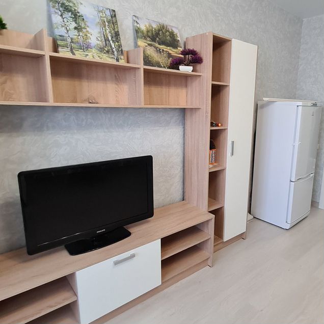 Есть всё необходимое для комфортного проживания: мебель на кухне и в комнате, холодильник и стиральная машина. Санузел совмещённый, с душевой кабиной.