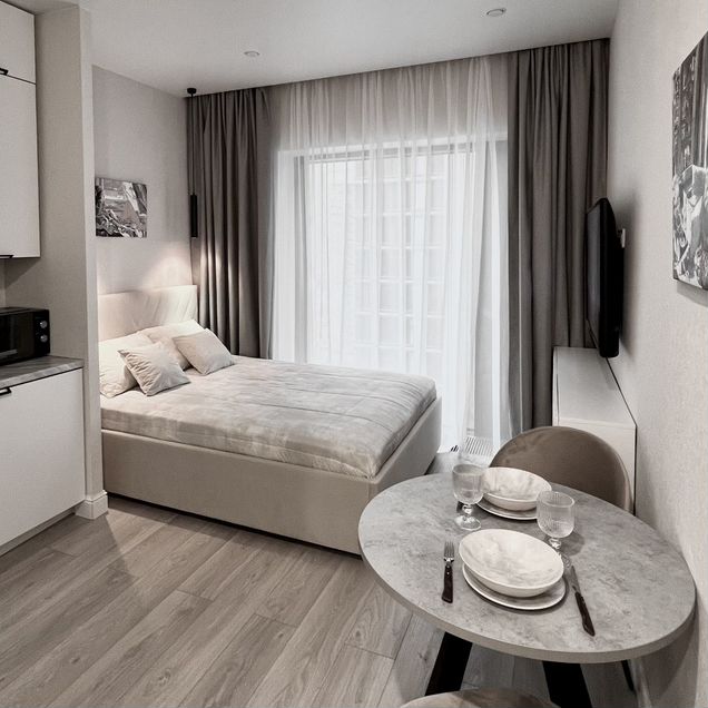 Новая студия со всей необходимой техникой и мебелью. Вся инфраструктура в шаговой доступности.