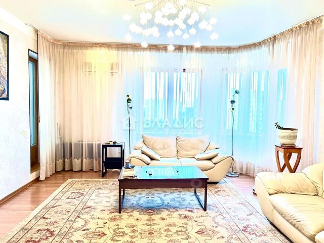 Квартира расположена на 15 этаже 22-этажного монолитного дома 1998 года постройки. Высота потолков 2,7 метра создаёт ощущение простора. Общая площадь квартиры составляет 104 кв. м, из которых 56 кв. м — жилая площадь. Окна выходят на улицу и во двор, обеспечивая достаточное естественное освещение.