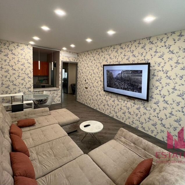 Удачная планировка: спальня, гостиная, отдельная кухня и комната свободного назначения (детская или кабинет).