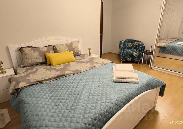 — Спальня 1: двуспальная кровать, шкаф-купе, кресло.