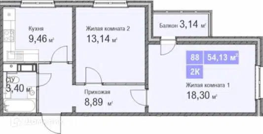2-комн. кв., 50.8 м², 2/14 этаж
