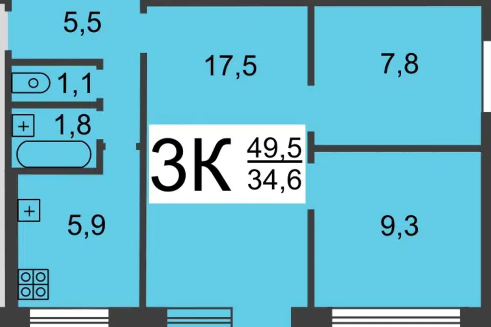 3-комн. кв., 58.7 м², 3/5 этаж