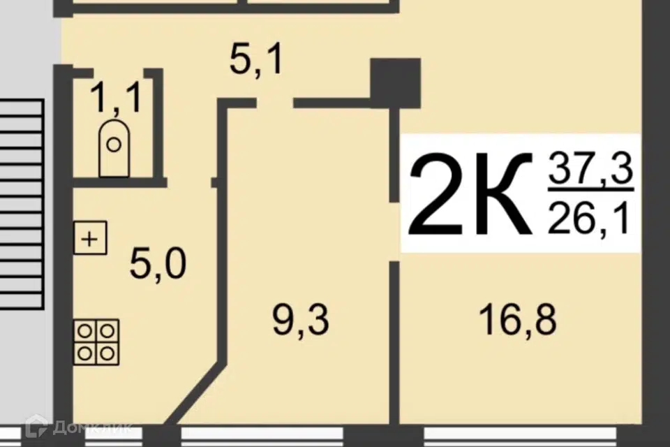 2-комн. кв., 37.3 м², 2/4 этаж