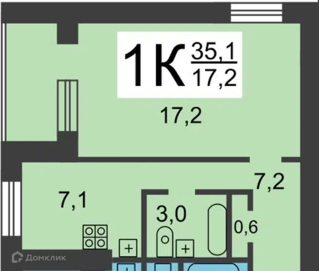 1-комн. кв., 29.8 м², 3/9 этаж