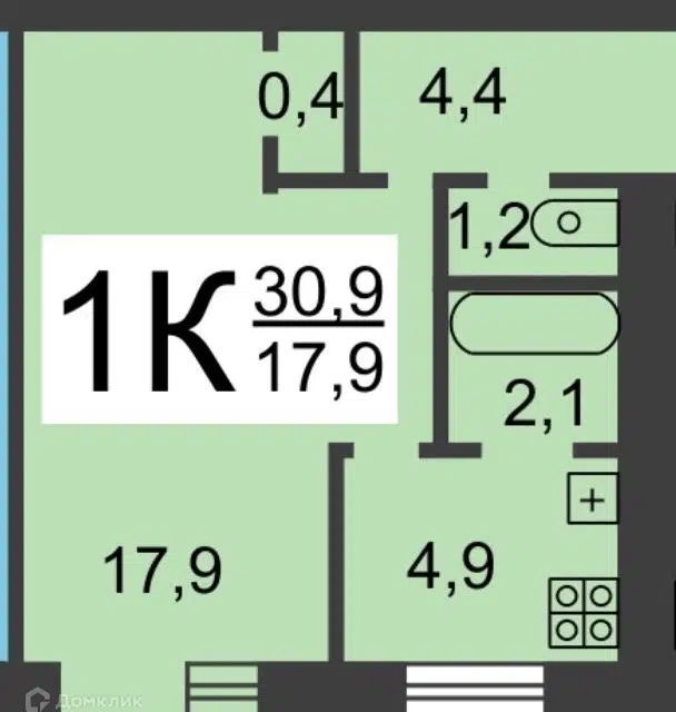 1-комн. кв., 30.9 м², 1/6 этаж