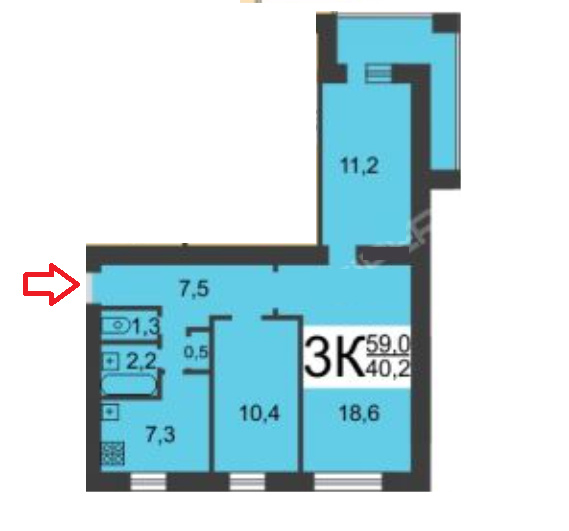 3-комн. кв., 66.8 м², 7/9 этаж
