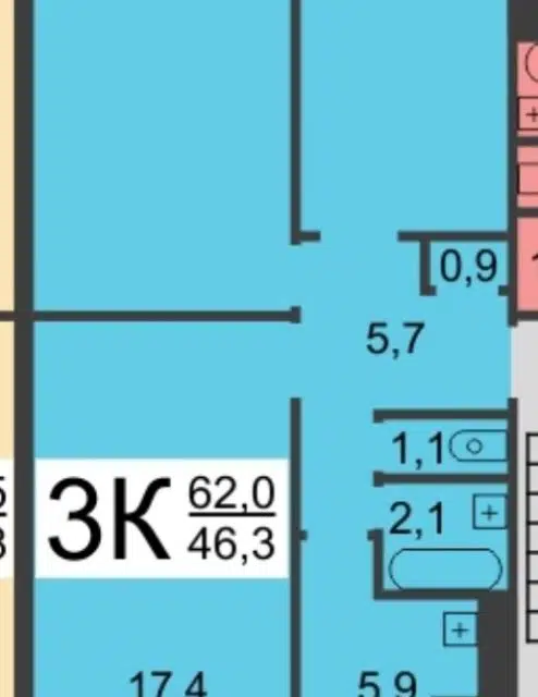 3-комн. кв., 62.7 м², 3/5 этаж