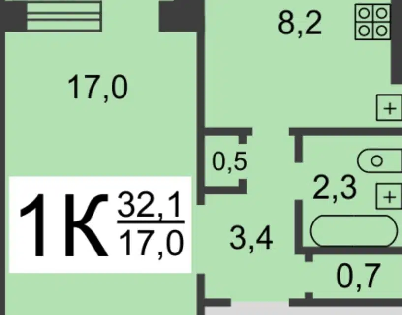 1-комн. кв., 32.7 м², 4/10 этаж