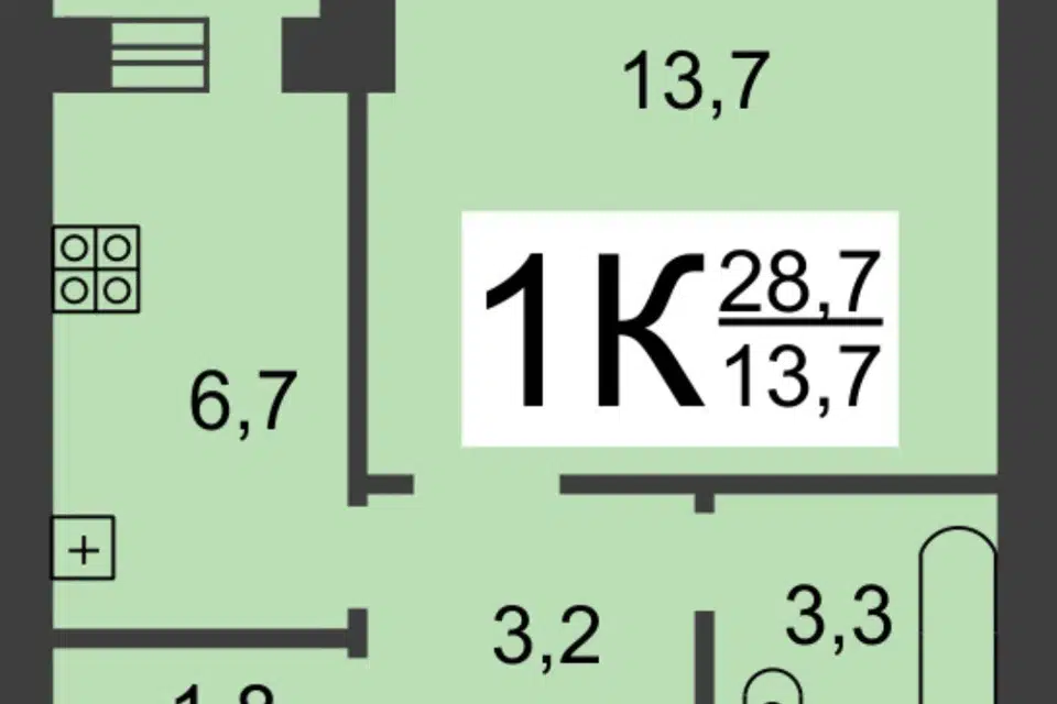 1-комн. кв., 28.7 м², 3/9 этаж