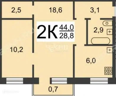 2-комн. кв., 44.3 м², 5/5 этаж