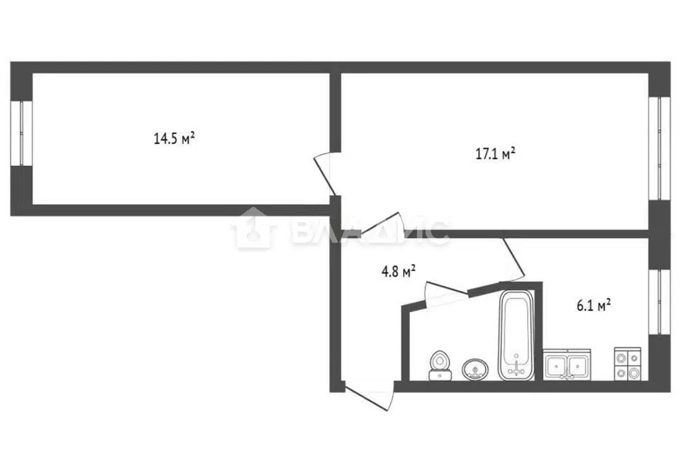 2-комн. кв., 42.8 м², 5/5 этаж