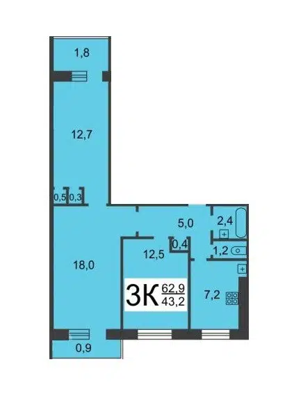 3-комн. кв., 60.6 м², 5/9 этаж