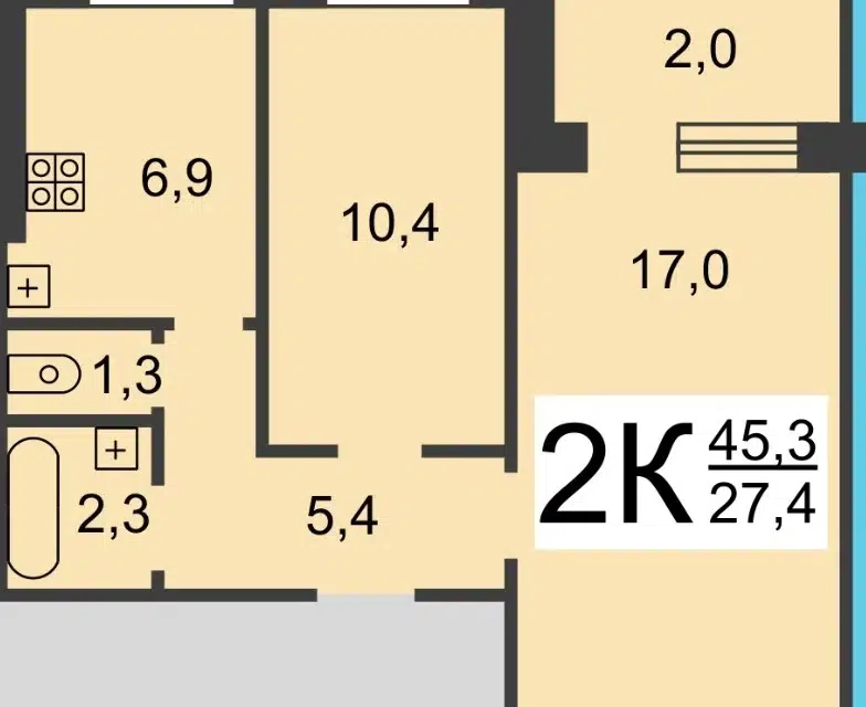 2-комн. кв., 45.8 м², 9/10 этаж