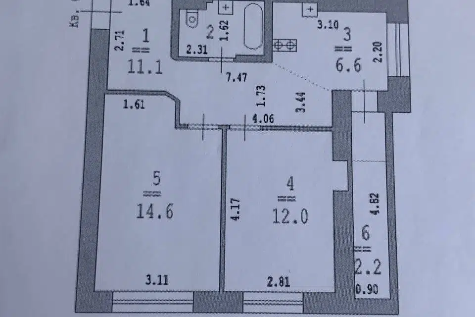 1-комн. кв., 44.6 м², 6/6 этаж