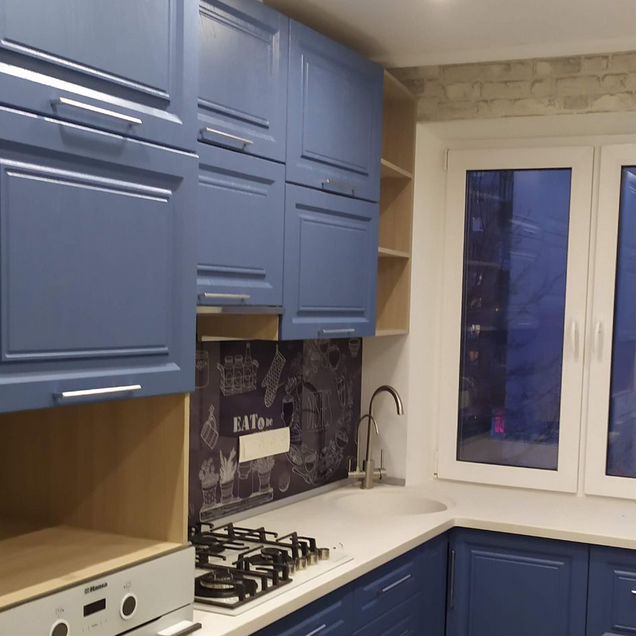 Кухня 8.8 кв.м, кухонный гарнитур и холодильник останутся новому владельцу.
