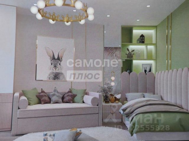 Квартира имеет три комнаты: зону гостиной, просторную спальню и детскую!