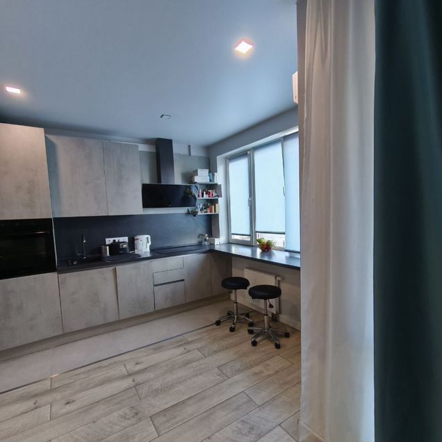 Квартира с хорошим ремонтом, выполненным из качественных материалов и современной мебелью (компактный стильный гарнитур с встроенной электрической плитой на две конфорки, смонтированы столешницы в комнате и ванной).