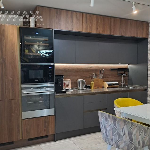 Современная кухня: кухня от «Мария» с встроенной техникой, винным шкафом и мойкой с измельчителем отходов-это мечта для любого кулинара! Здесь вы сможете готовить и принимать гостей с комфортом.