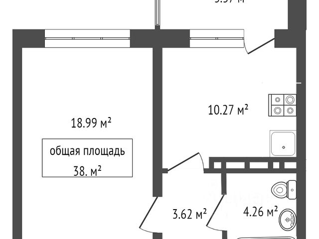 Студия, 18.21 м², 9/10 этаж