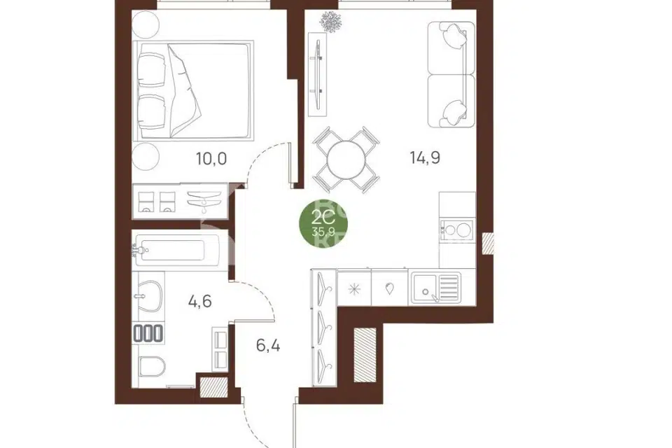 1-комн. кв., 31.1 м², 3/6 этаж
