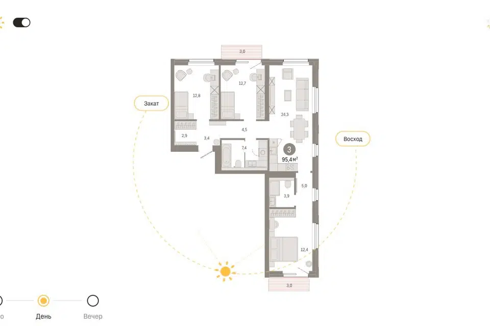 3-комн. кв., 95.4 м², 9/9 этаж