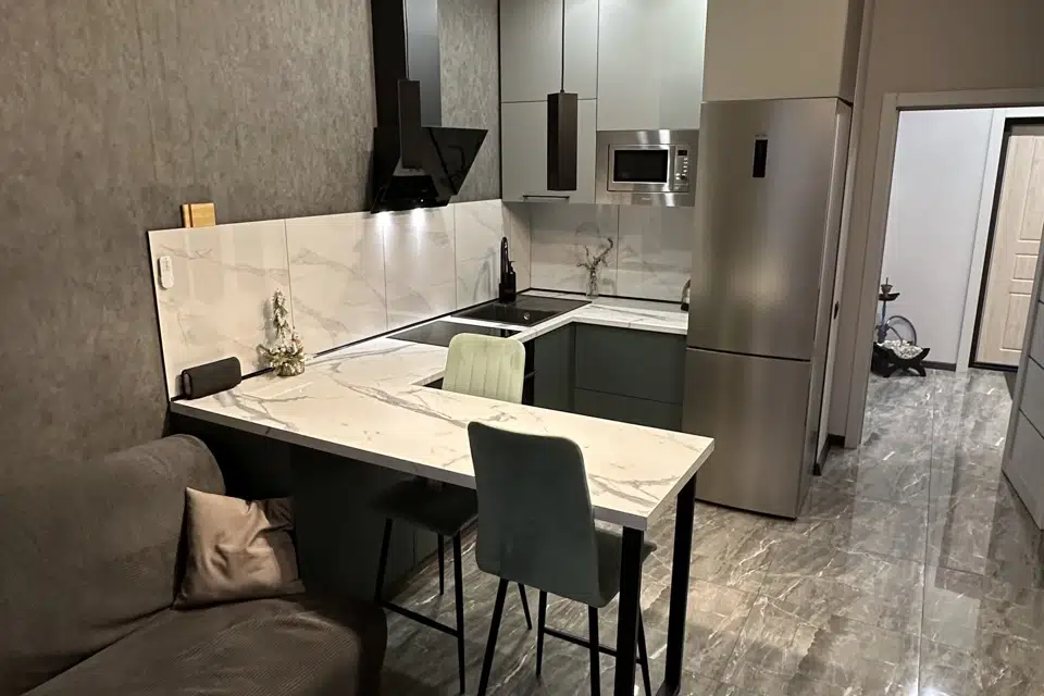 • Просторная кухня-гостиная, с современной бытовой техникой.