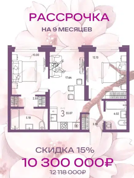 3-комн. кв., 55.07 м², 24/24 этаж