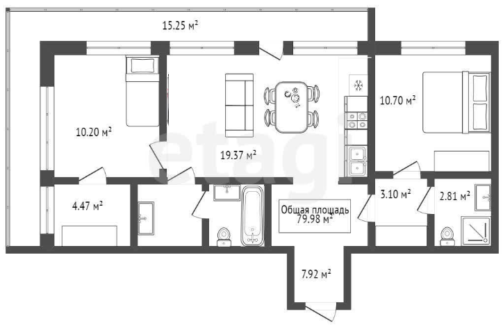 3-комн. кв., 79.98 м², 8/17 этаж