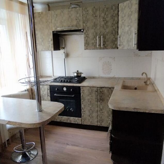 Кухня имеет удобную планировку, что делает процесс приготовления пищи приятным и комфортным. Здесь найдется место для всего необходимого: от бытовой техники до кухонной утвари.