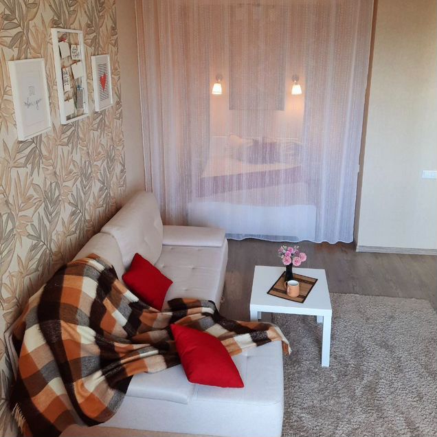 Уютная квартира студия.В хорошем состоянии.Магазины все рядом..В пяти минутах ходьбы Первомайский рынок и кинотеатр.Остановка рядом. В любой конец города можно уехать .Солнечная сторона.Парковка отдельная ,на две машины.