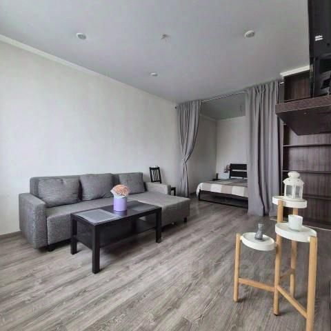 В квартире есть всё необходимое для комфортного проживания: современная мебель в комнате и на кухне, а также вся необходимая техника, включая холодильник и телевизор. Планировка включает совмещённый санузел с ванной и просторную лоджию для отдыха.