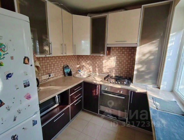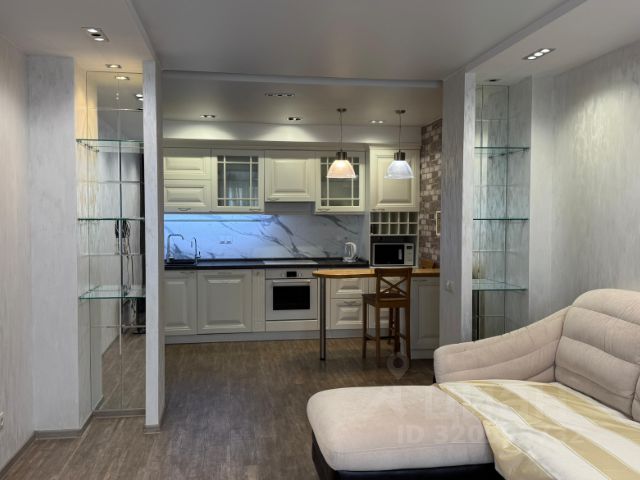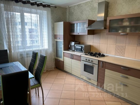 В квартире выполнен хороший косметический ремонт. Есть практически все необходимое для проживания: современный кухонный гарнитур со встроенной варочной панелью и духовым шкафом, холодильник, диван, кресло, шкафы и тумбы, телевизор.