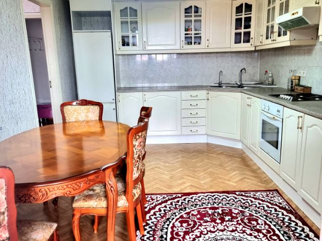 В квартире есть все необходимое: плита, духовка, холодильник, микроволновка, посуда, стиральная машина, телевизор, диваны, большая двуспальная кровать, диван-кровать, вместительные шкафы.