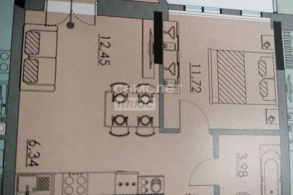 2-комн. кв., 43.6 м², 6/9 этаж